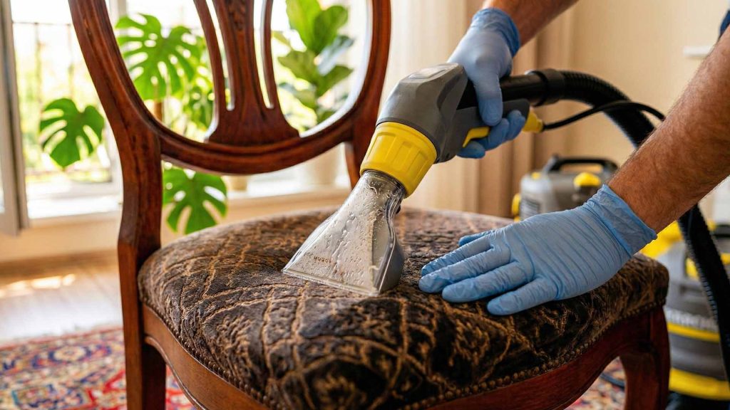 Buharlı sandalye yıkama, sandalyenin kumaş veya deri yüzeyine zarar vermeden temizlik yapar. Kimyasal temizleme ürünleri yerine yalnızca su buharı kullanıldığı için, malzemenin renkleri solmaz veya deformasyona uğramaz.